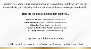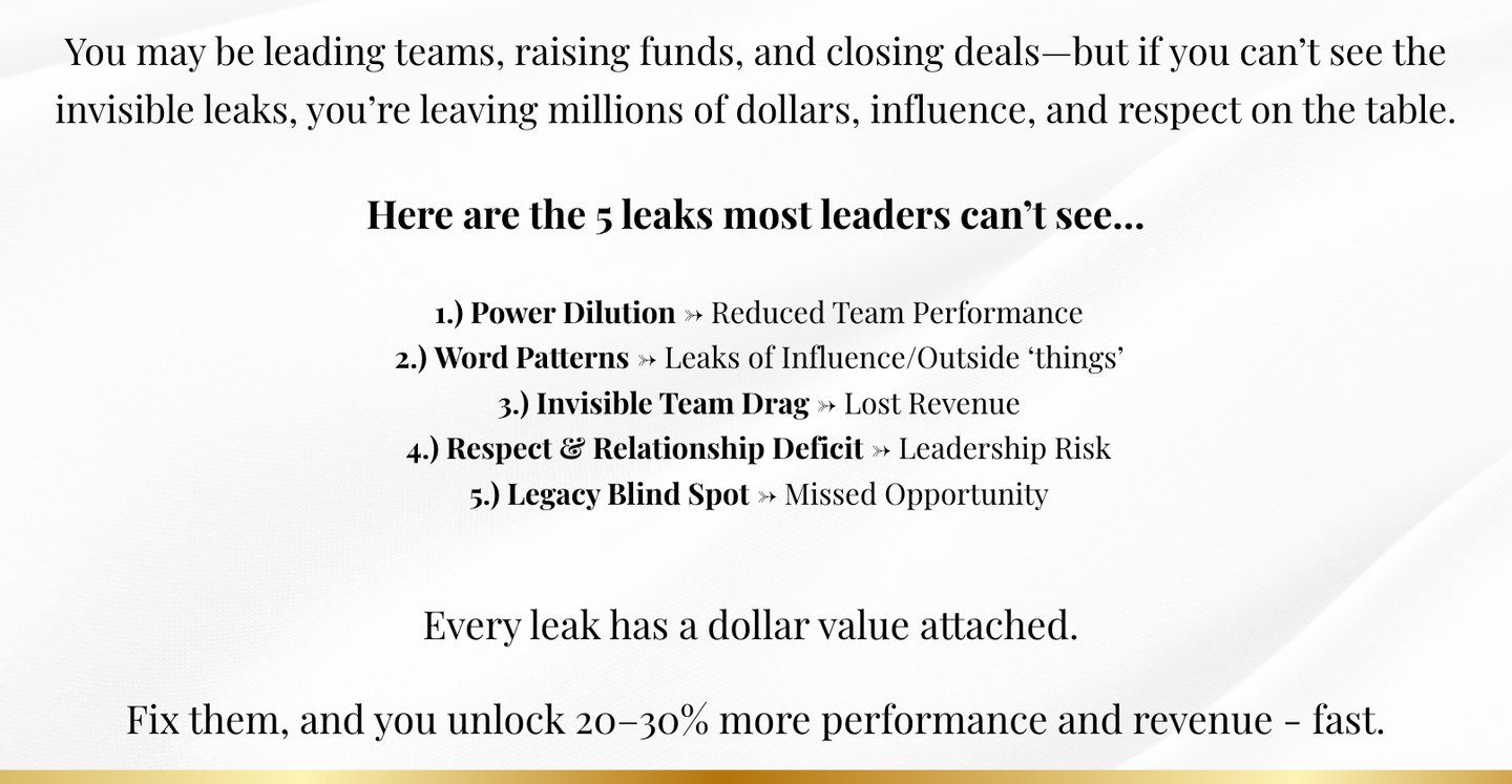 Maximize revenue and influence by closing hidden gaps in leadership and team performance.