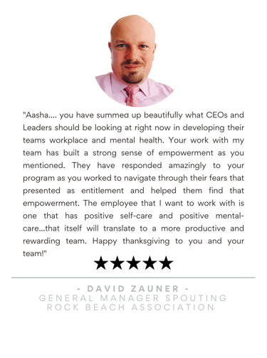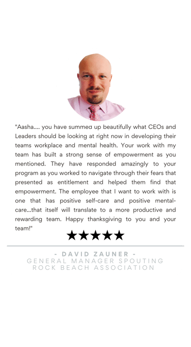 Aasha leads a dedicated team of 4 and a line of people waiting to work with her, and they are committed to serving teams and individuals into their highest level of leadership.